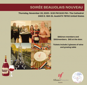 Come sip, snack, and dance your way into French culture with us. And don’t worry, all the fun supports a good cause: proceeds benefit the AFA & Austin-Angers Sister Cities’ Scholarship Funds.